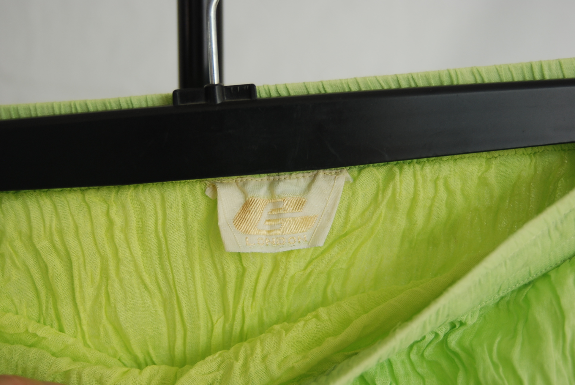 Lange rok, crinkle look, gifgroen, met leuke details.